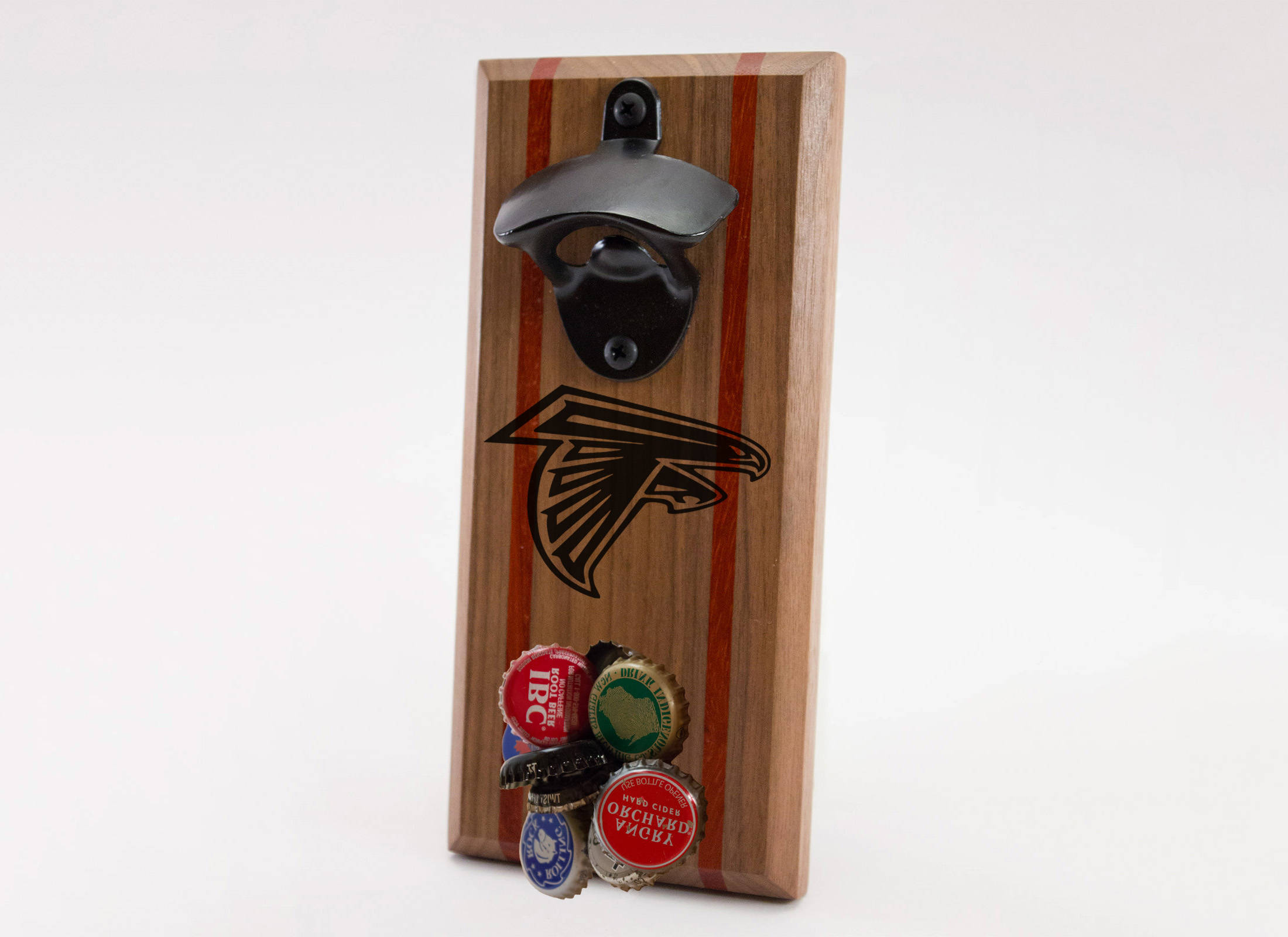 It’s Friday night again and those bottles aren’t going to open themselves…after another long week at your job, you’re gonna need a few. It’s time to elevate your beer drinking to an art form. This opener does several things to aid in that endeavor: It opens the bottles, does the cleanup for you and looks awesome doing so. With a custom Atlanta Falcons logo engraved on the front no one will question your team pride now!