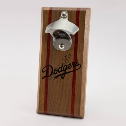 This specially engraved Los Angeles Dodgers magnetic bottle opener will simplify all of your drinking needs! Now you can open a bottle and let the cap fall safely to the powerful magnet hidden beneath the surface and show off your Dodger team pride!