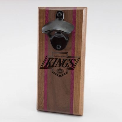 This specially engraved Los Angeles Kings magnetic bottle opener will simplify all of your drinking needs! Now you can open a bottle and let the cap fall safely to the powerful magnet hidden beneath the surface and show off your Kings team pride!
