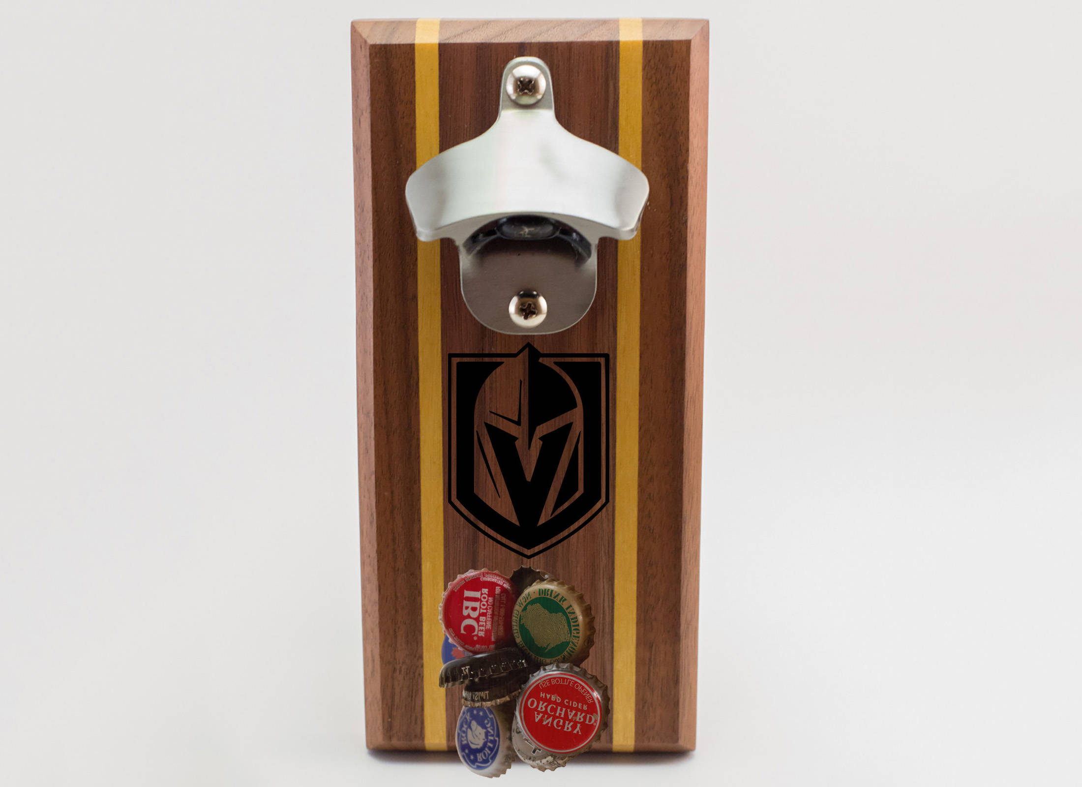 It’s Friday night again and those bottles aren’t going to open themselves…after another long week at your job, you’re gonna need a few. It’s time to elevate your beer drinking to an art form. This opener does several things to aid in that endeavor: It opens the bottles, does the cleanup for you and looks awesome doing so. With a custom Vegas Golden Knights logo engraved on the front no one will question your team pride now!